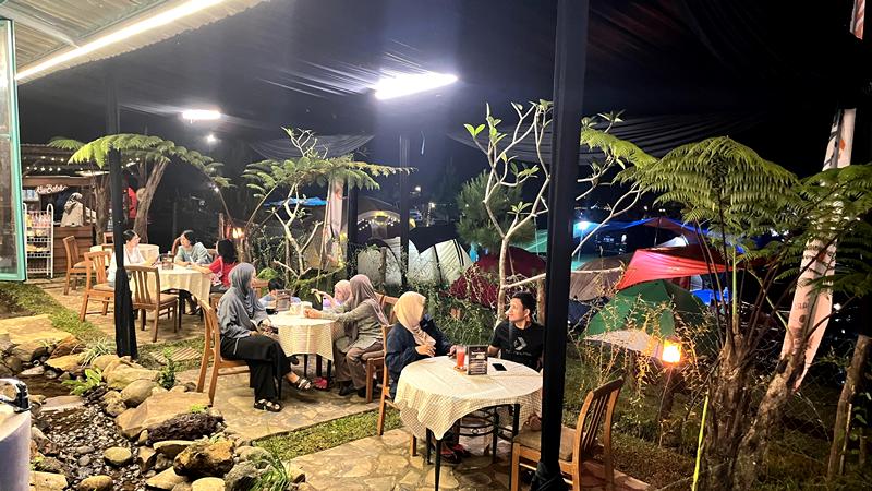 Suasana pengunjung Kafe Campers Shelter di Campervan Park, Sari Ater saat Jam Session berlangsung Sabtu malam, 15 November 2025. (Foto: Kliknusae.com/Adhi)