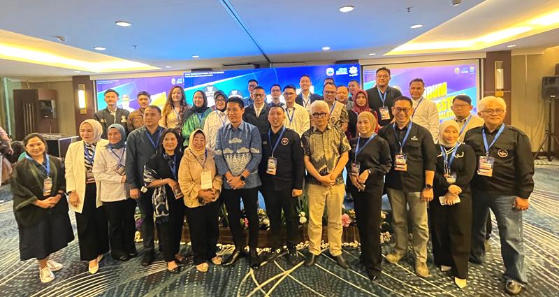Kepala DPMPPTSP Kabupaten Lampung Selatan, Rio Gismara, melakukan sesi foto bersama dengan para peserta Forum Investasi Lampung Selatan 2025 yang digelar di Hotel Aston Tropicana, Kota Bandung, Kamis, 11 Desember 2025. (Foto: Kliknusae.com/Adhi)