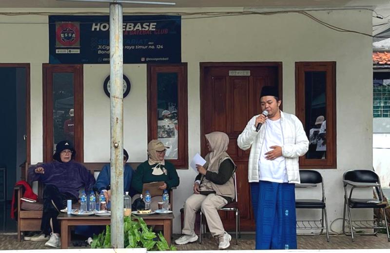 Ustadz Ahmad Dukoni memberikan tausiyah sekaligus memimpin doa sebelum dimulainya Fun Gateball Games Sari Group 2026. (Foto: Kliknusae.com/Adhi)