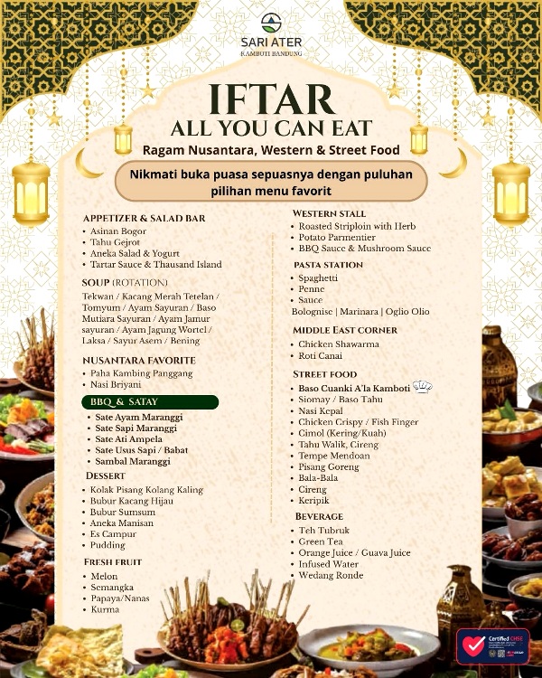 KLIKNUSAE.com – Menjelang bulan Ramadhan, Sari Ater Kamboti Hotel Bandung menyiapkan program berbuka puasa dengan tawaran yang menggiurkan.