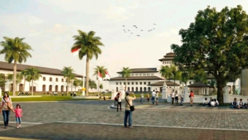 Perubahan justru diarahkan pada aspek visual dan keterpaduan ruang. Ketinggian halaman Gedung Sate akan diselaraskan dengan kawasan Gasibu. Menciptakan bentang ruang yang lebih lapang dan menyatu.