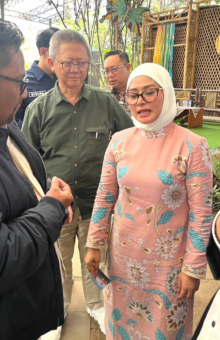 Bupati Pangandaran Citra Pitriyami didampini Sekretaris PHRI Jawa Barat Herie Hermanie Soewarma–yang juga Direktur Sari Ater Hot Springs menyempatkan berbincang-bincang dengan pelaku usaha wisata usai acara Coffee Morning IV GIPI Jawa Barat, Rabu 29 April 2026. (Foto: Kliknusae.com/Adhi)